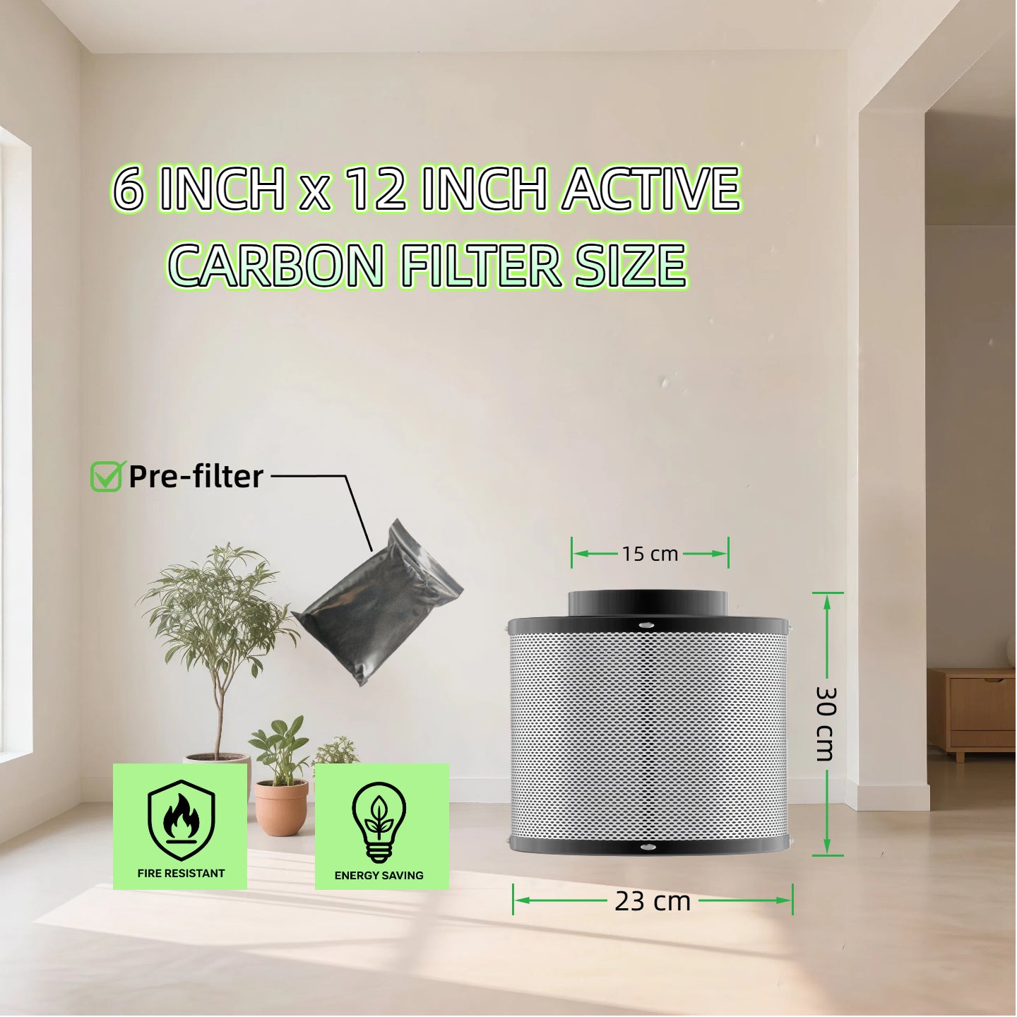 6"x12 Inch Carbon Filter Inline Tube Fan Control for Fan Grow Tent Ventilation AU Stock